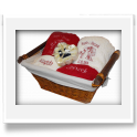 Ręcznik lub ręczniki mogą być zapakowane w celofan. Dodatkowo mogą zostać ozdobione kolorową wstążką oraz umieszczone w koszu wiklinowym.